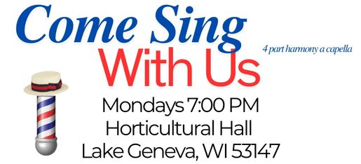 We are always looking for more voices to join us! Come to the Horticultural Hall in Lake Geneva on Monday nights at 7:00 pm!